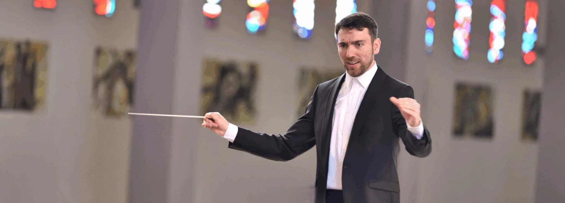 Das Kreis­ju­gend­blas­or­ches­ter Ess­lin­gen steht seit Som­mer 2018 unter sei­ner Leitung.